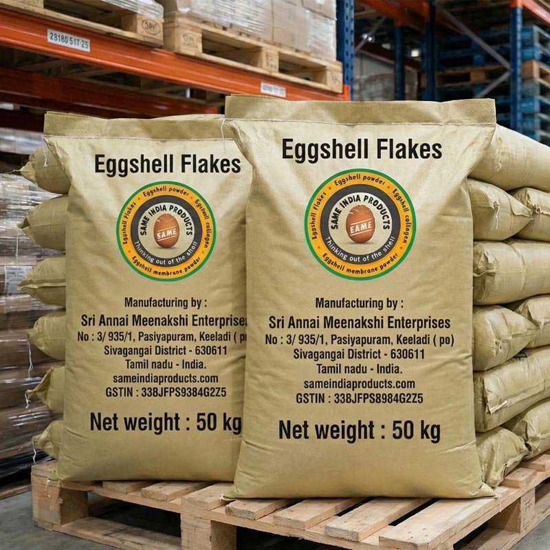 Eggshell flakes are widely used in agriculture, animal feed, fertilizers, soil conditioners, and industrial applications due to their high calcium carbonate content and eco-friendly nature. Our company focuses on delivering consistent quality, bulk supply capability, and export-grade packaging to meet the needs of global buyers.